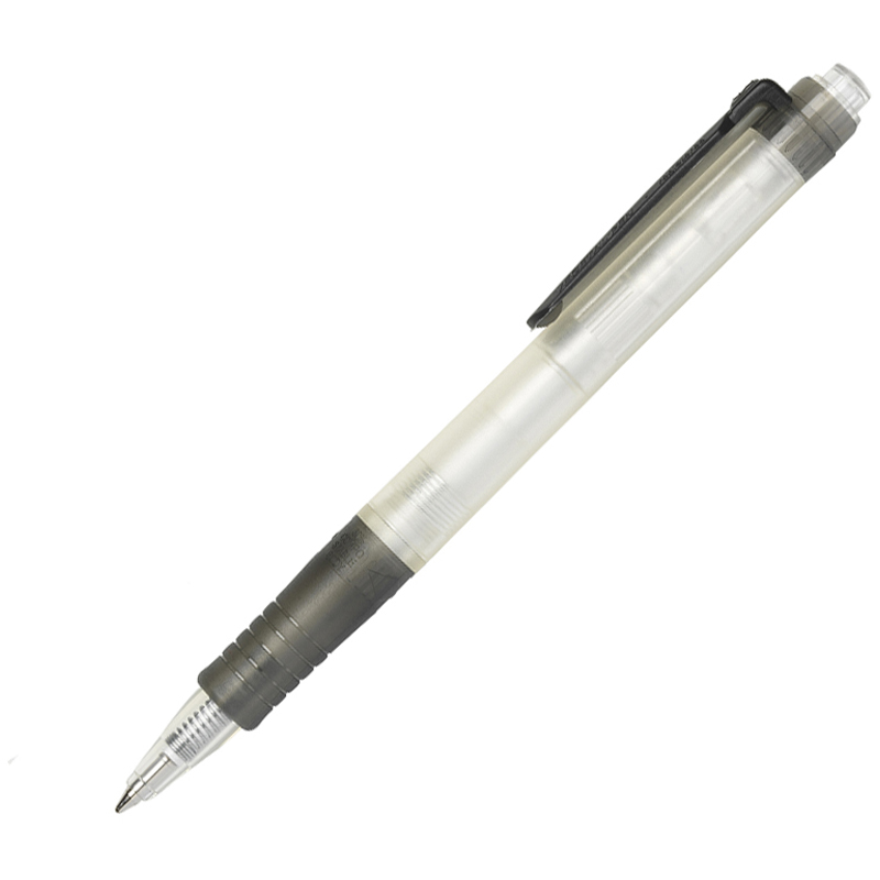 Innovative Retractable Ballpen with 80% of its components derived from plants. Transparent barrel made from Corn Starch. Comfort Rubber Grip denotes ink colour. Medium point.