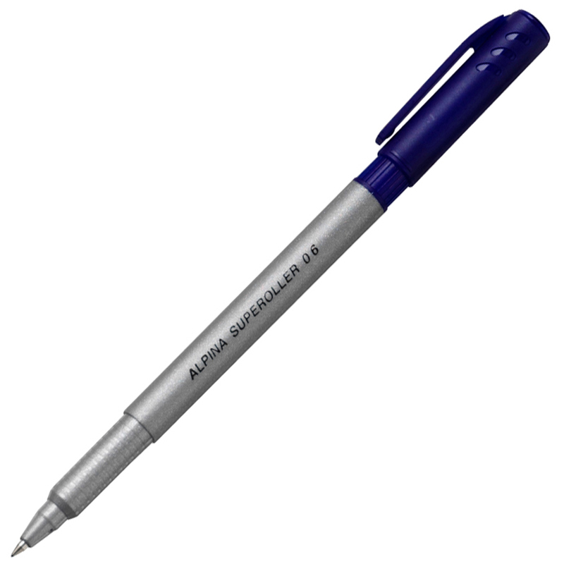 The Alpina Superoller is a metal tipped rollerball with smooth writing for 2000 metres. The ink is non-toxic, its colour denoted by cap and end plug. Grey barrel.