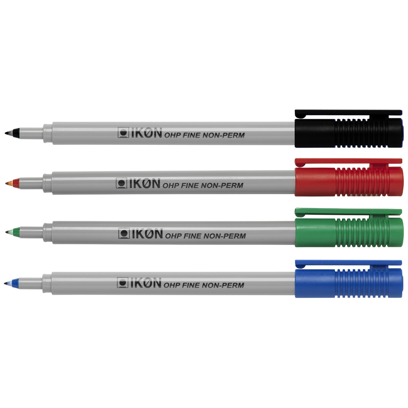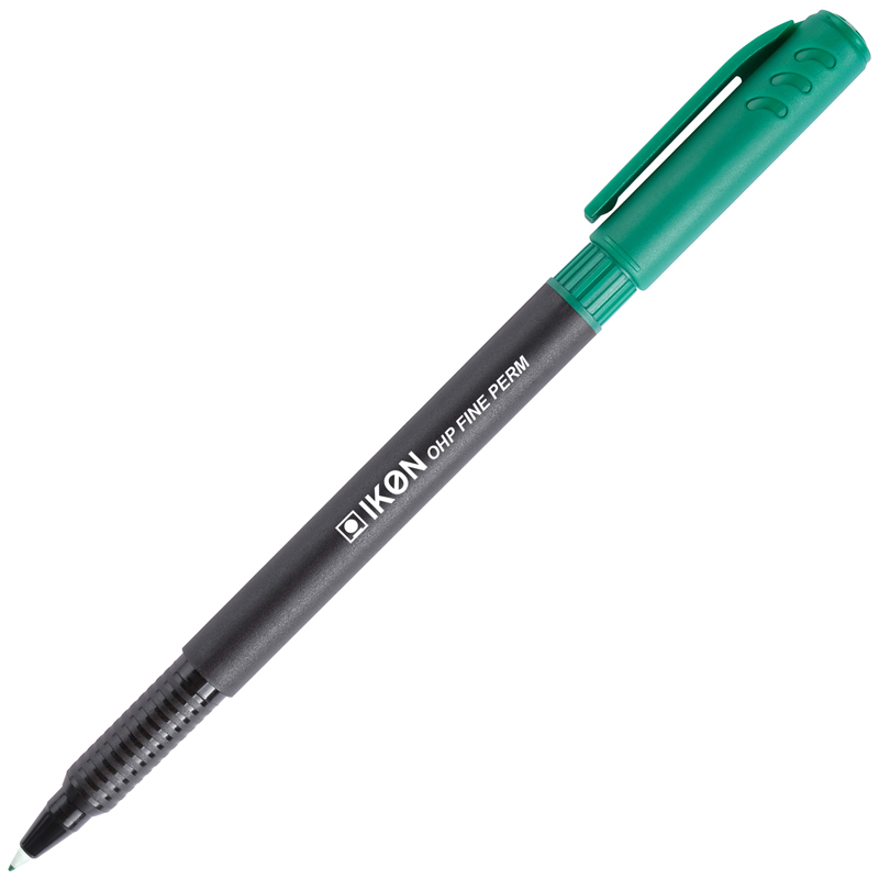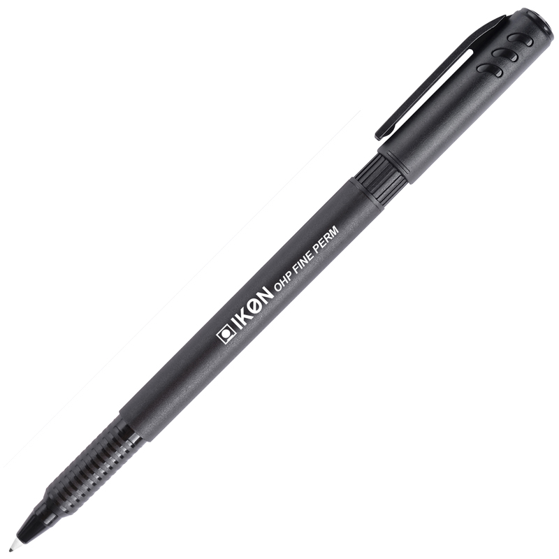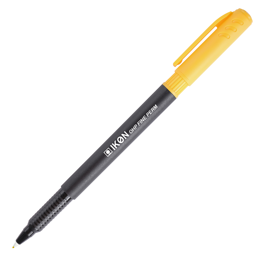 The IKON OHP Permanent is an overhead projector pen which can perform as a permanent marker. The pen has a fine point and a black barrel. Cap is as per ink colour.