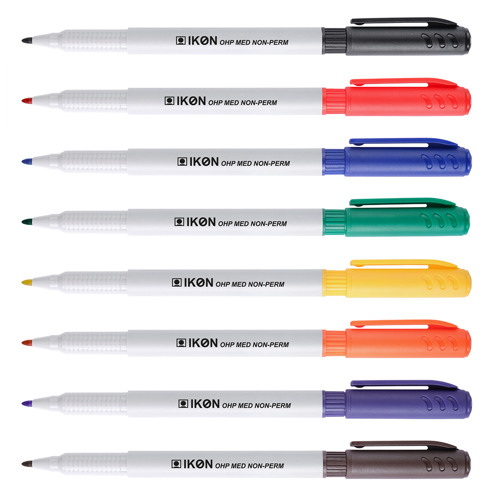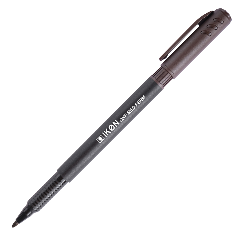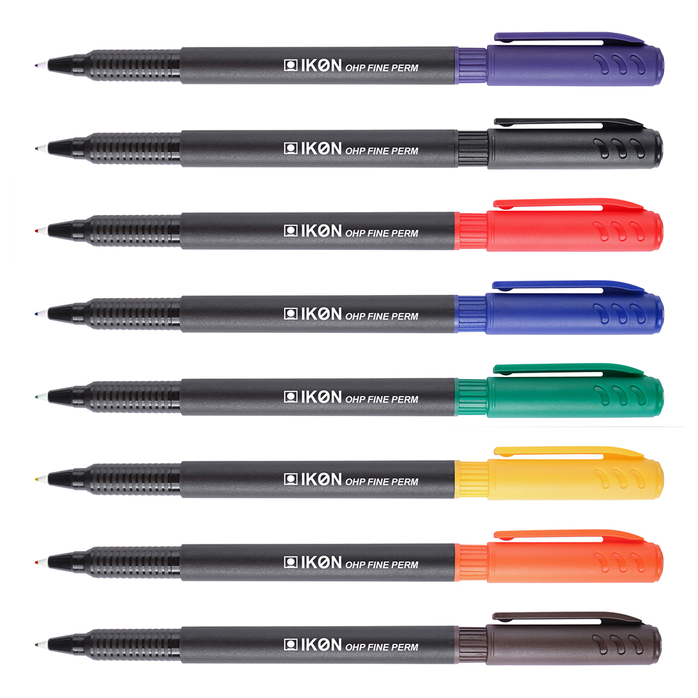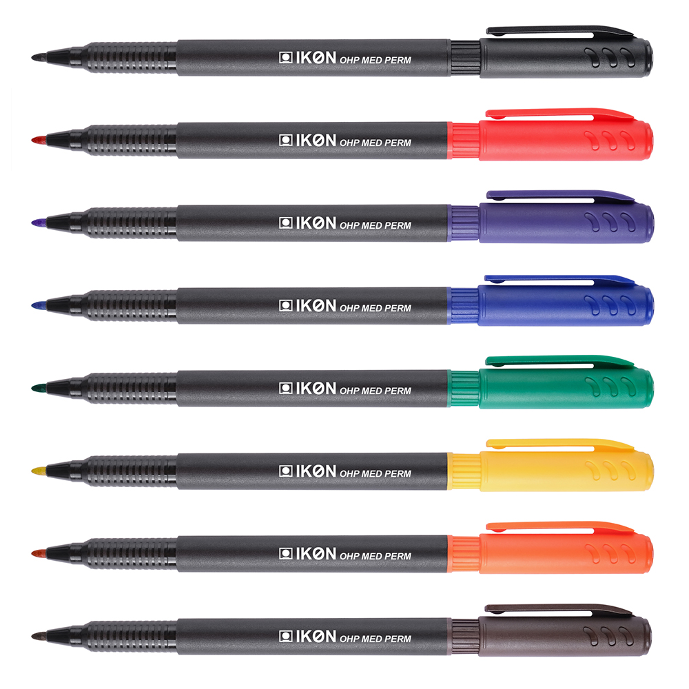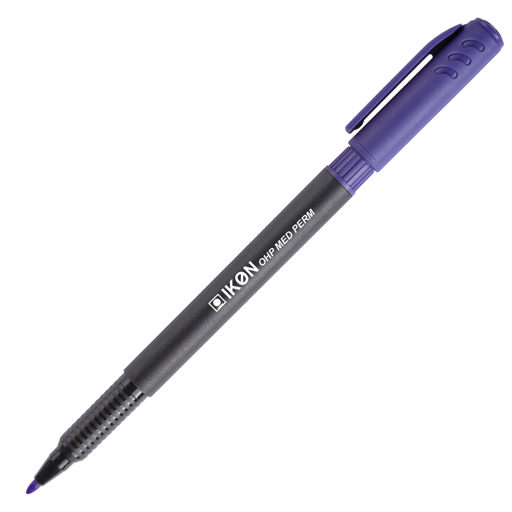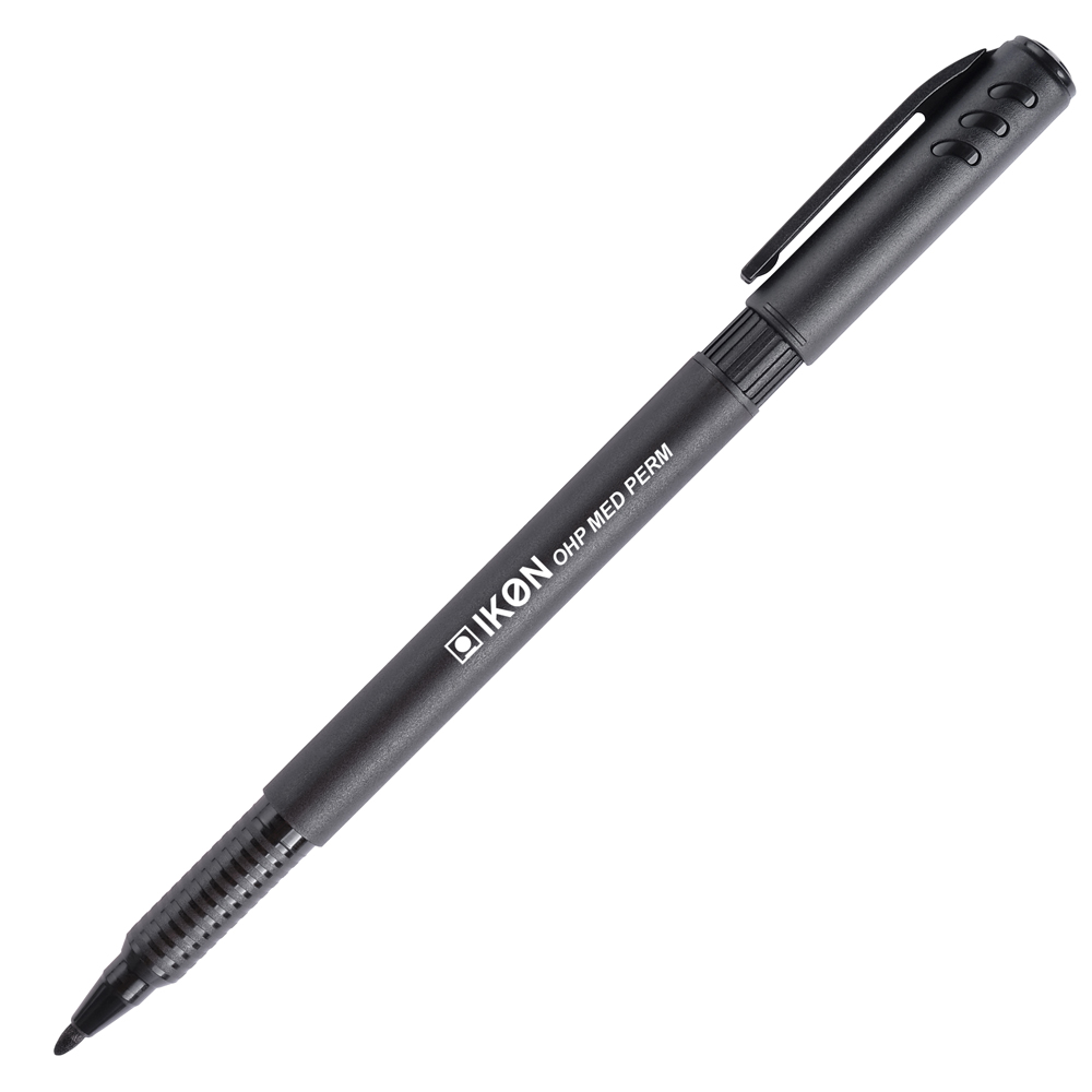 The IKON OHP Permanent is an overhead projector pen which can perform as a permanent marker. The pen has a medium point and a black barrel. Cap is as per ink colour.
