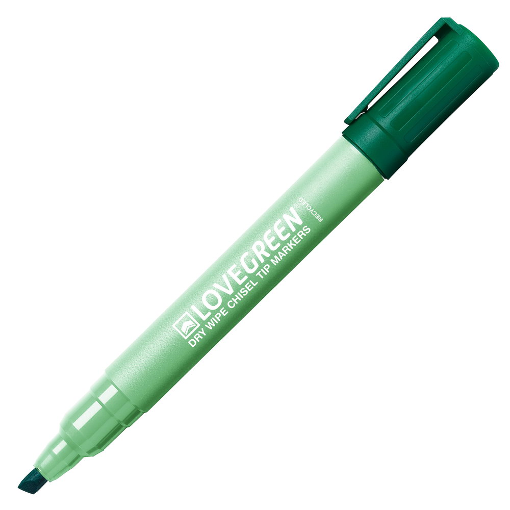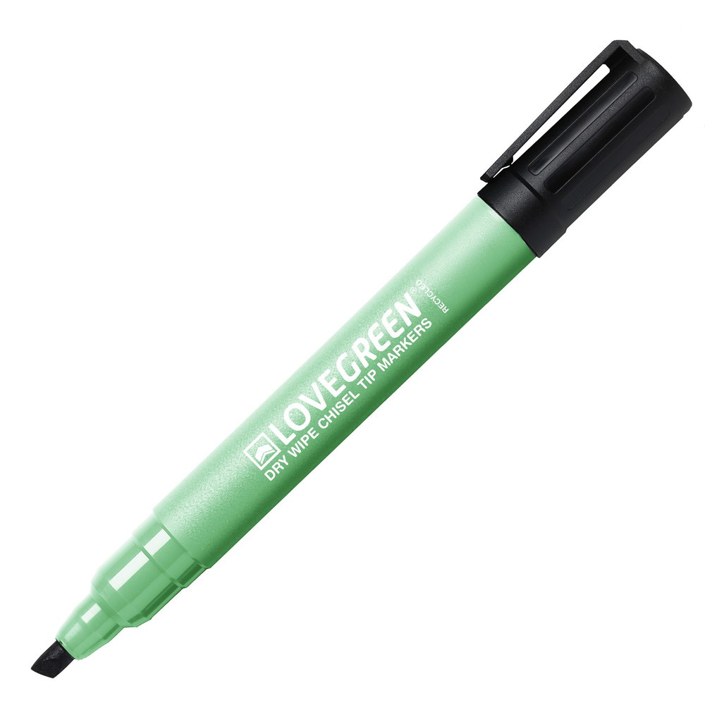 The LOVEGREEN DRY WIPE CHISEL TIP MARKER is manufactured with verified post-consumer plastic waste of European origin