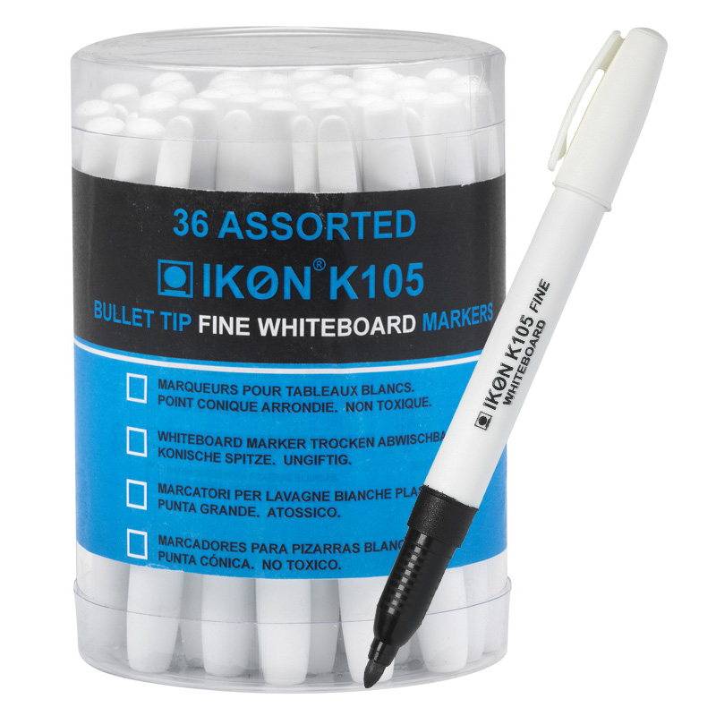 The Memo is a bullet tipped dry wipe marker ideal for memo and mini white board writing in schools. The markers have slim white barrels and ventilated caps for safety. Black ink.